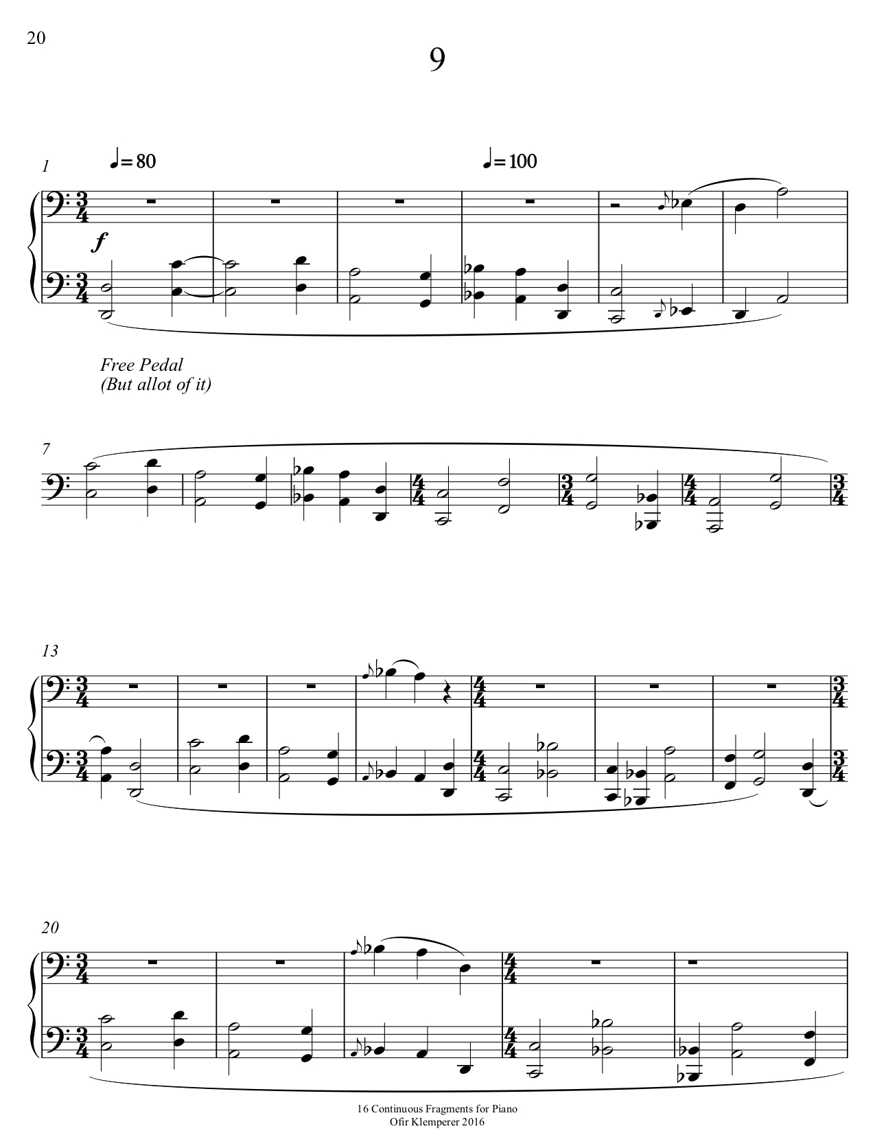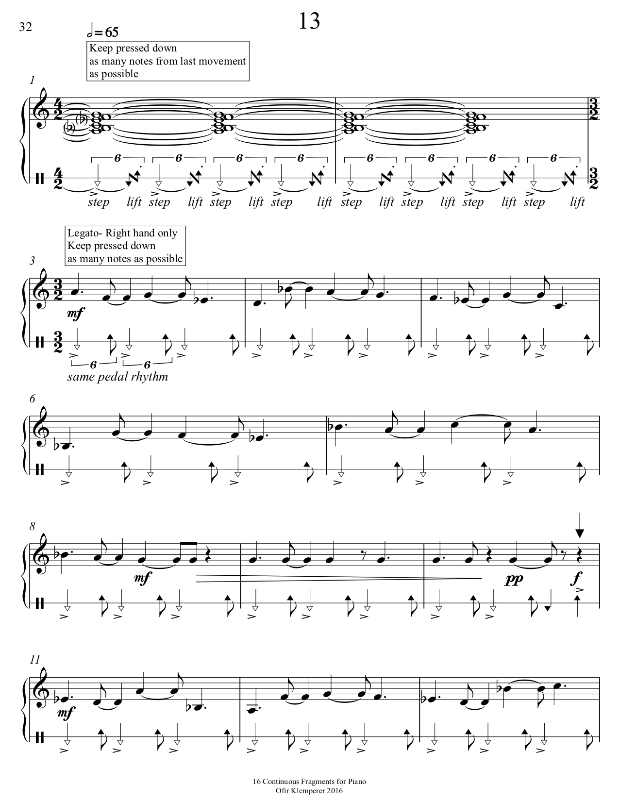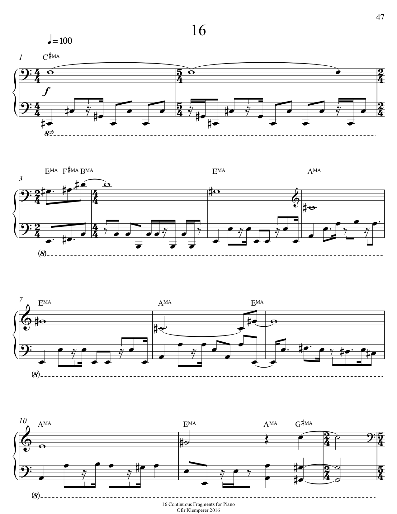 Through the transcription process, I found that from the attempt of playing with expectation, things I play sound like they don’t have a continuous time signature and pulse, but, along with the listener’s point of view I remembered my original trail of thought. And so, I learned that I have a “glitch” in my rhythmic perception, and, as I do often with glitches in my perception – I use them, as material, comment on them, and develop them into themes.