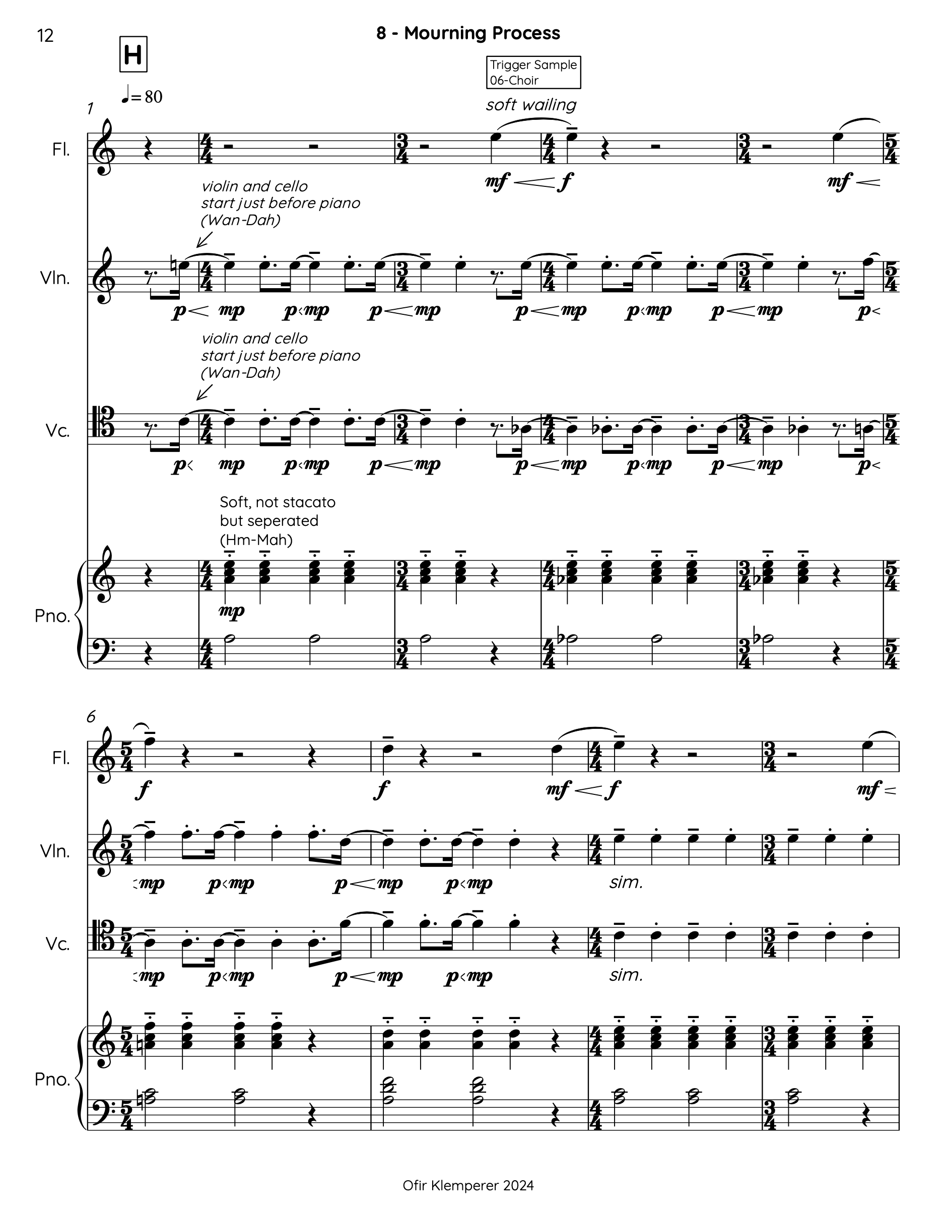 On the musical side, Ofirās score for flute, violin, cello, piano, and recorded sounds creates a soundscape that reflects this emotional journey. His compositions are marked by conflicting harmonic content, combining moments of subtlety with raw, visceral soundscapes. The inclusion of audio material such as the sound of burning matches and recordings of his childās voice adds layers of personal reflection and universal significance. His music is deeply shaped by the recent Israeli-Palestinian war, expressing the trauma, loss, and helplessness that comes with witnessing ongoing conflict. Yet, even within the chaos, the lullaby-like quality of the music reminds us that life, and the act of parenting, persists.