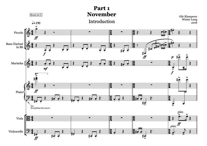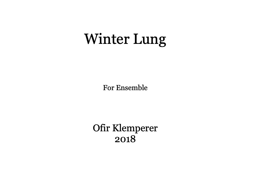 Winter Lung – for ensemble Premiered by Zsolt Nagy and Israel Contemporary Players at Tel Aviv Museum of Art, part of Israel Contemporary Music Festival